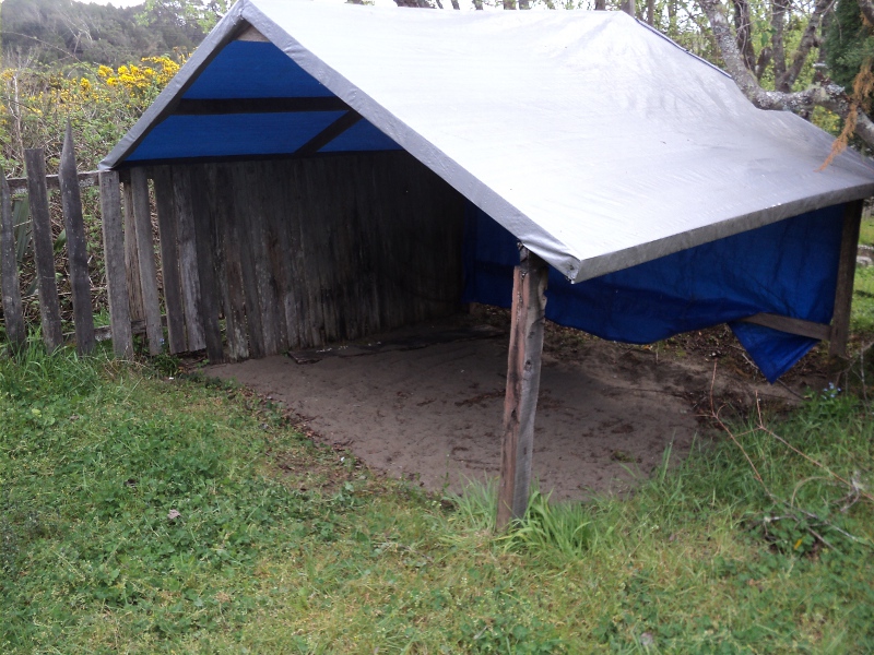 fogón para asados con parrilla, una mesa techada y un techo para armar una carpa.